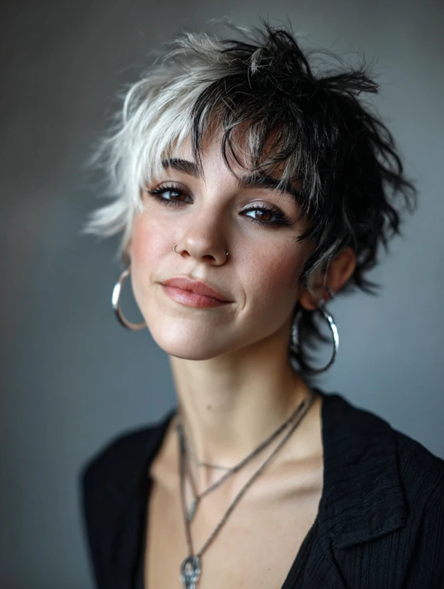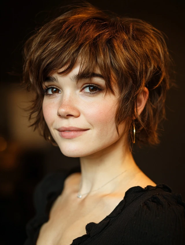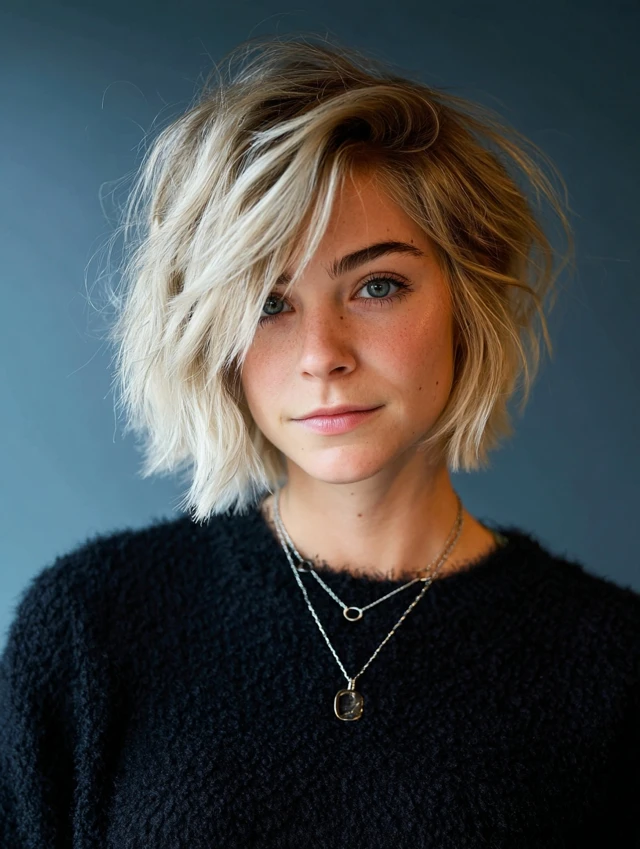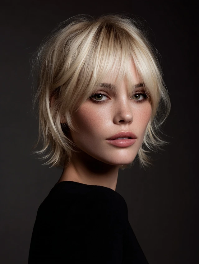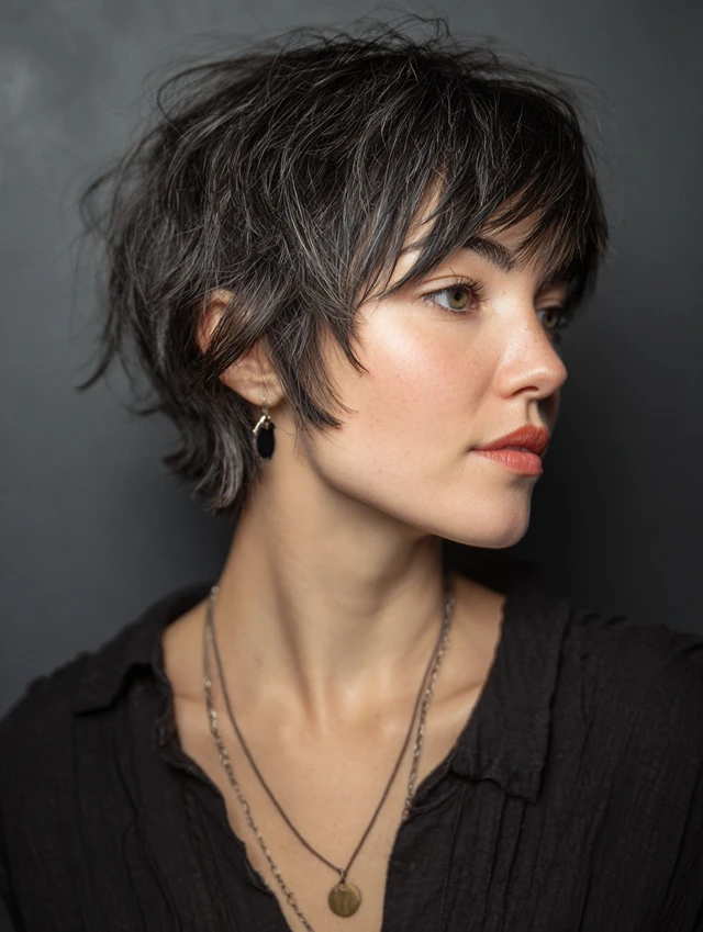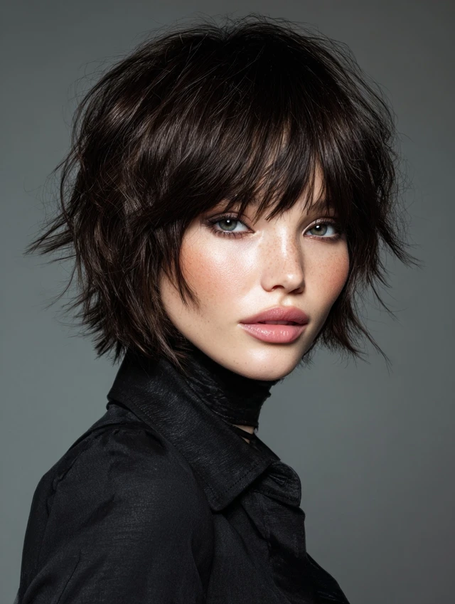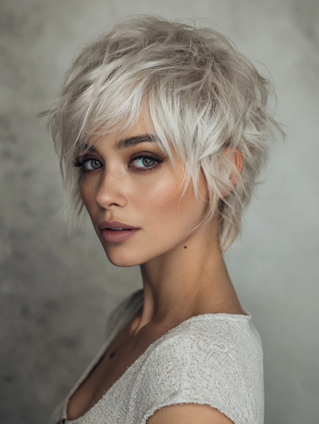The 90s-inspired choppy bixie cut is the perfect mix of nostalgia and modern style. With its textured layers, soft bangs, and slightly messy finish, it delivers a bold yet wearable look that’s easy to maintain.