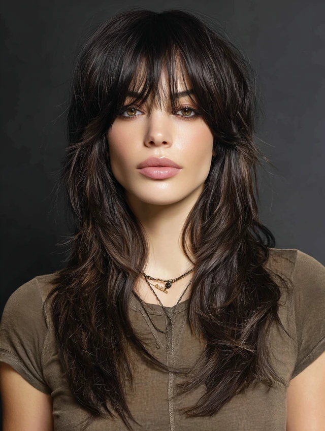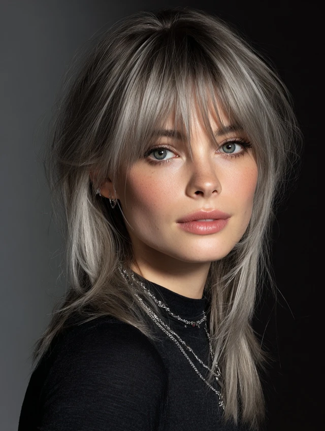 Wispy bangs soften the edgy layers and give a true 90s vibe.