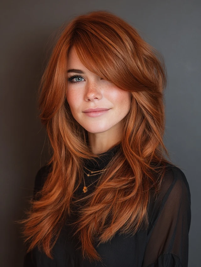 A deep side part adds asymmetry, giving the cut a modern, face-framing effect.