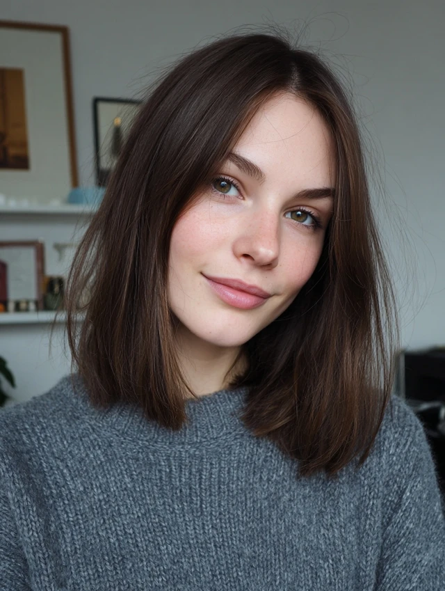 Chin-length to collarbone (too long = flat).