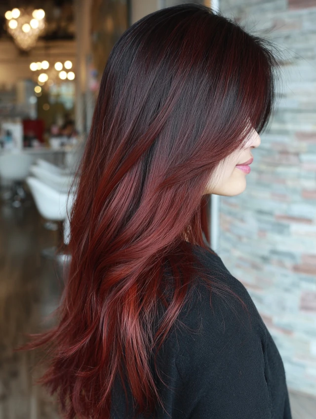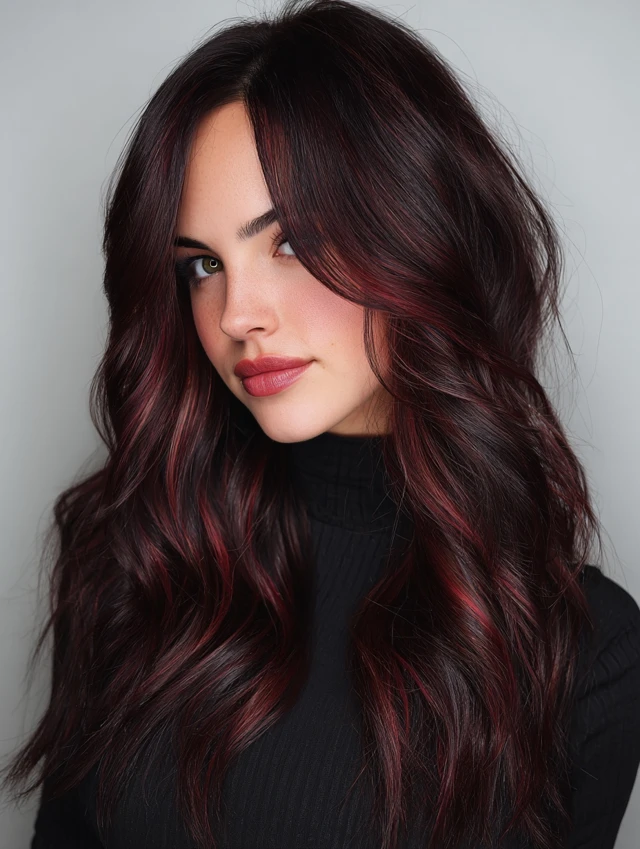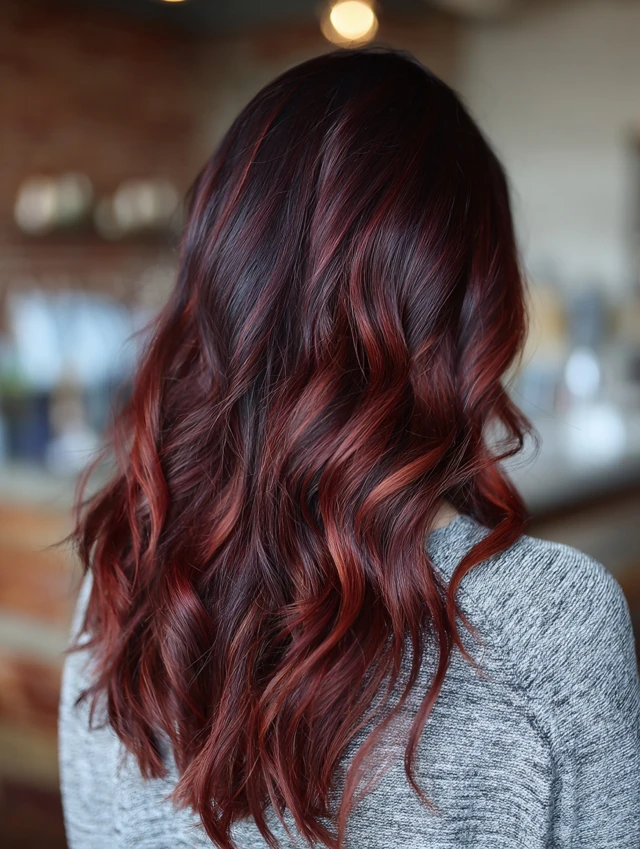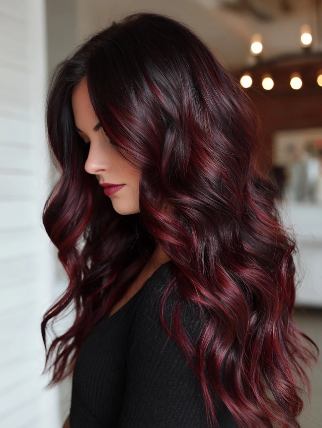 Balayage adds natural-looking dimension while highlighting the cherry tones.