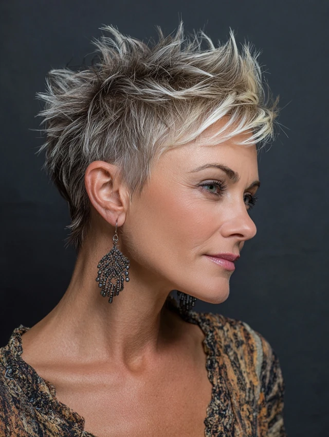 Short, spiked layers give a bold and energetic vibe.