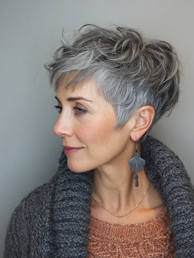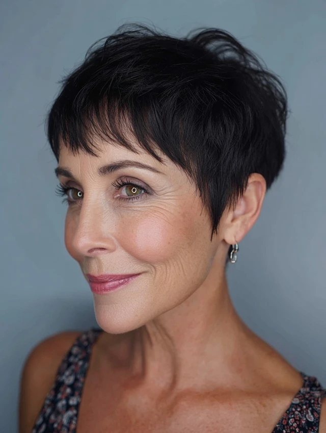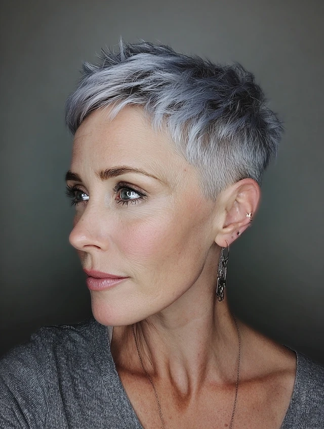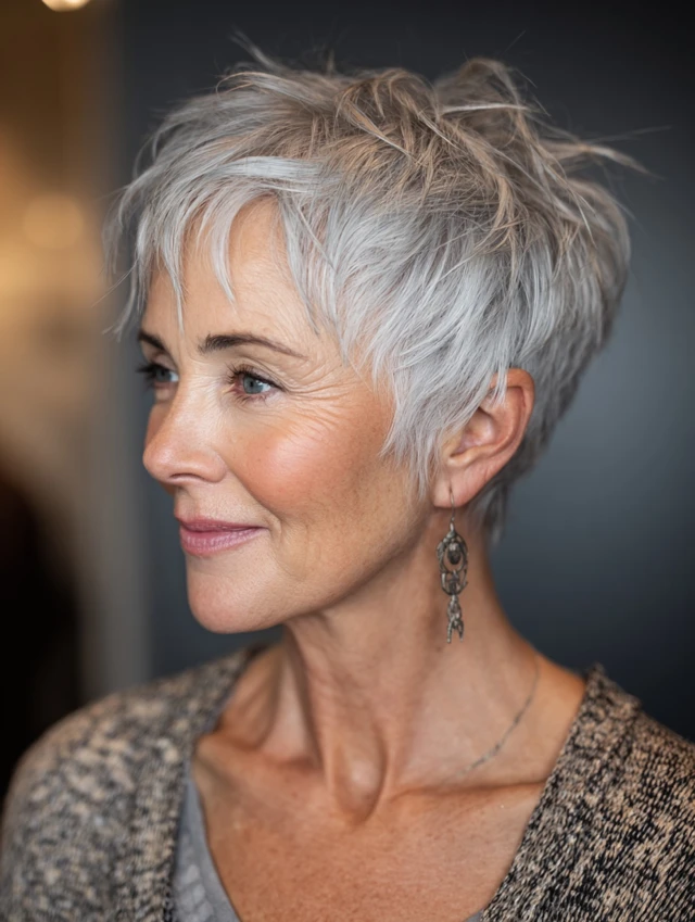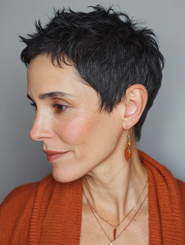 Edgy pixie haircuts for women over 40 are all about attitude, texture, and personality. These styles move beyond the classic soft pixie and introduce sharper lines, asymmetry, undercuts, and choppy layers for a more fashion-forward, confident look.