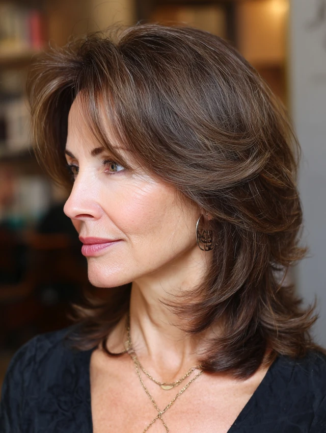 Hairstyles for women over 50 with a double chin are all about balance and subtle contouring. The right cut shifts attention upward and creates a more defined overall look.