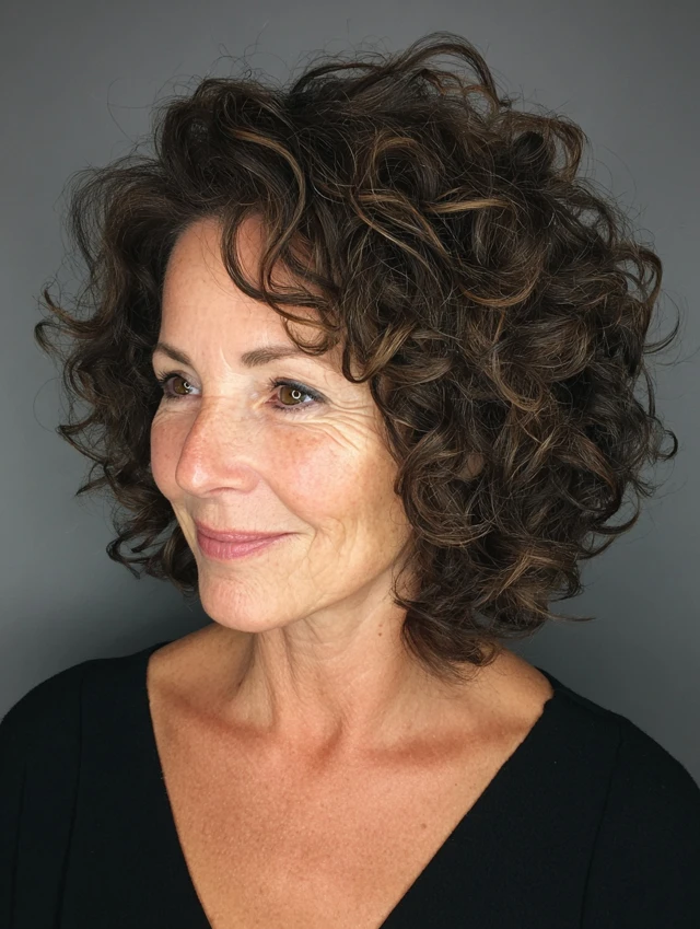 A curly shoulder-length cut embraces natural texture while maintaining control and shape. The length allows curls to form without becoming overwhelming.