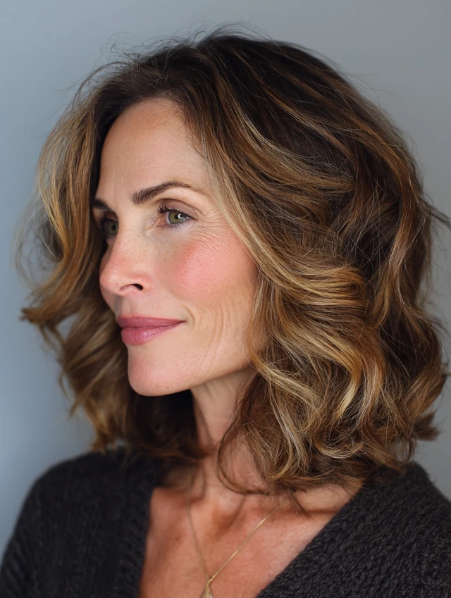 A wavy lob adds texture and movement while maintaining a structured shape. The waves soften the overall look without disrupting balance.