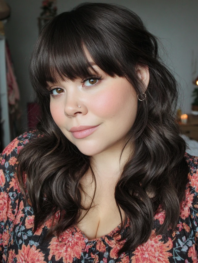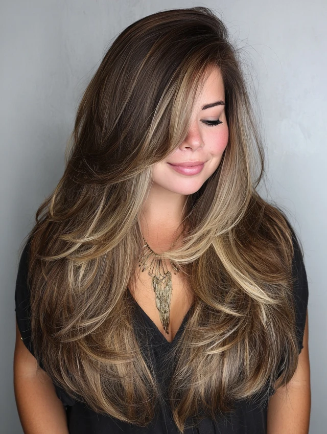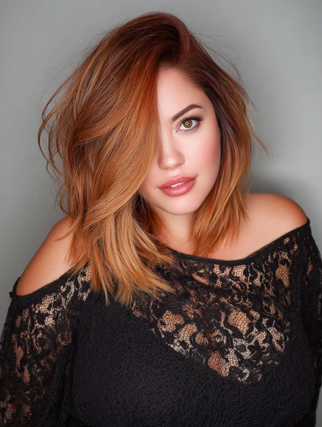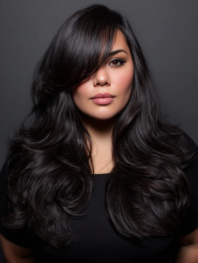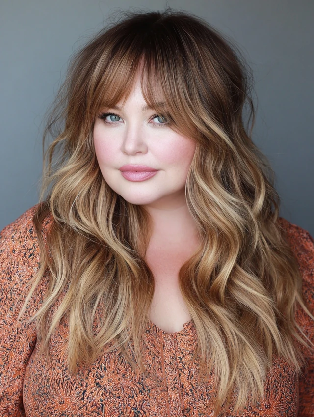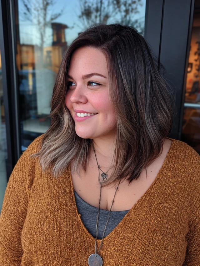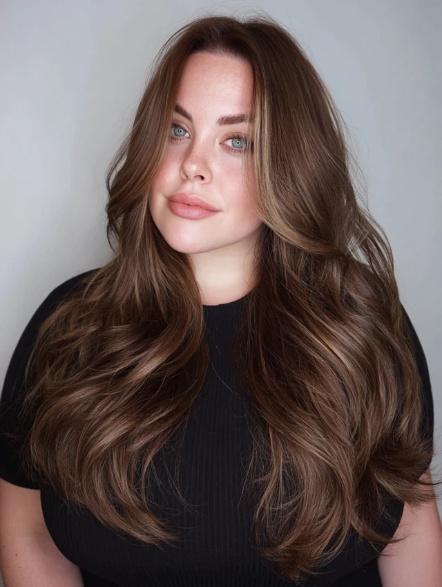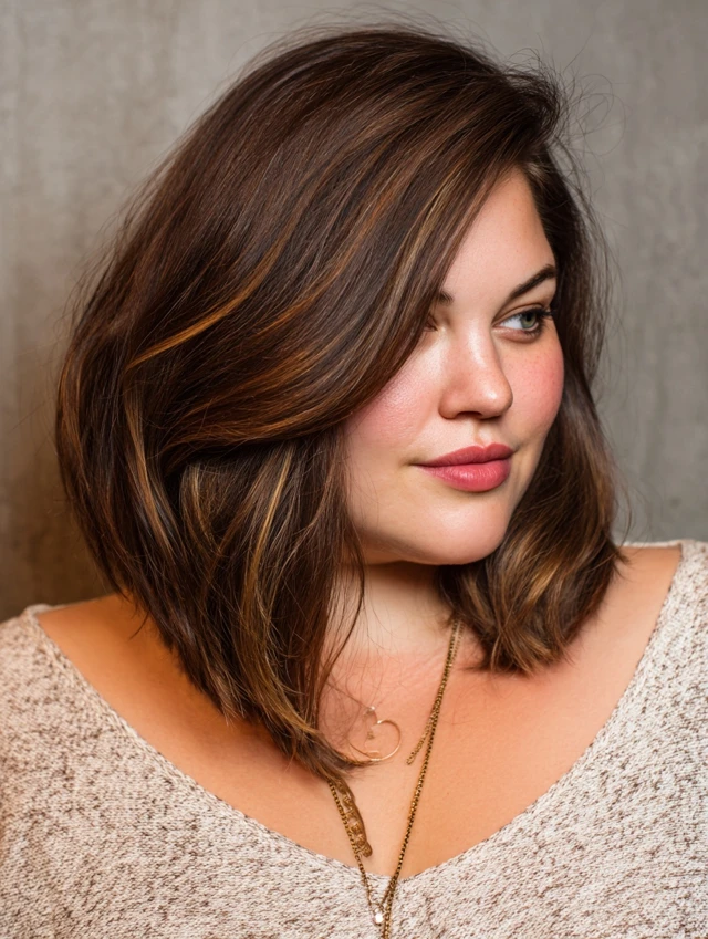 Strategic color placement can enhance slimming effects — balayage, money-piece highlights, or ombré draw attention downward and frame the face. Texture is also your friend: waves and curls add dimension and prevent a flat look.
