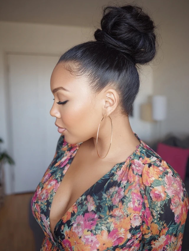 Why It Works: Adds height at the crown and keeps hair out of the face.