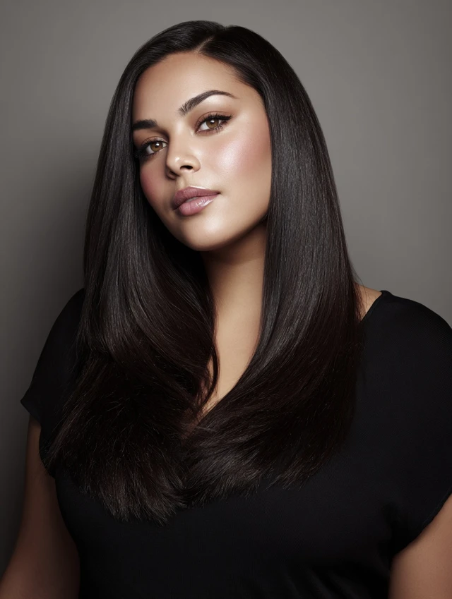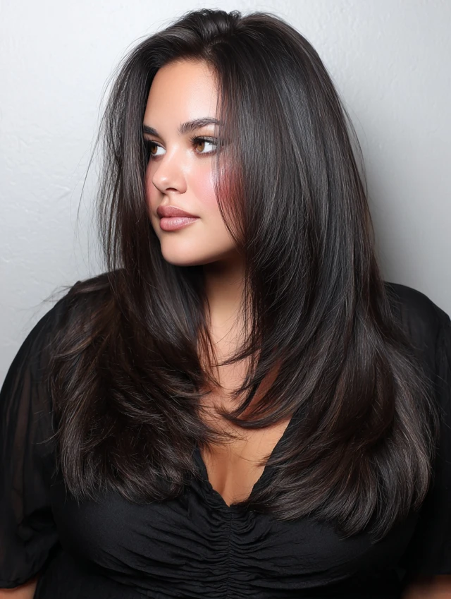 Long layered hairstyles are one of the most flattering choices for plus-size women — they create movement, prevent hair from looking heavy, and frame the face beautifully. Layers break up the length, add bounce, and help elongate the overall silhouette. Whether you wear your hair sleek, wavy, or curly, long layers are versatile and endlessly stylish.