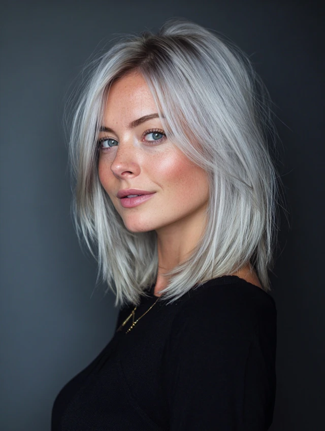 Medium-length hair offers balance and manageability, making it a perfect match for silver strands. Here’s why it’s ideal: