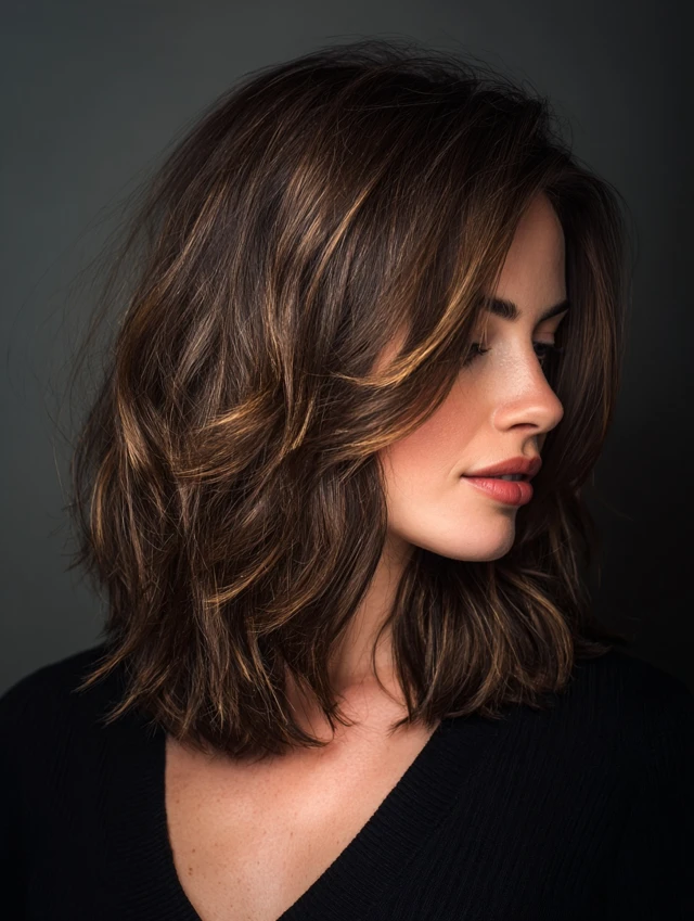- Cut: Shoulder-length bob, textured lob, or layered mid-length style.