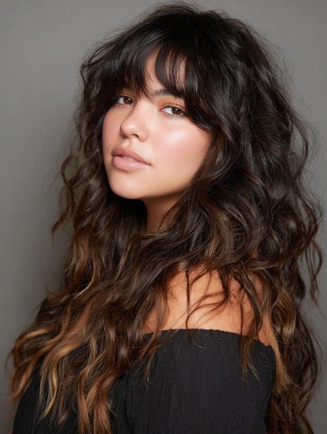- Bangs: Curtain bangs or wispy fringe pair perfectly with shag cuts.