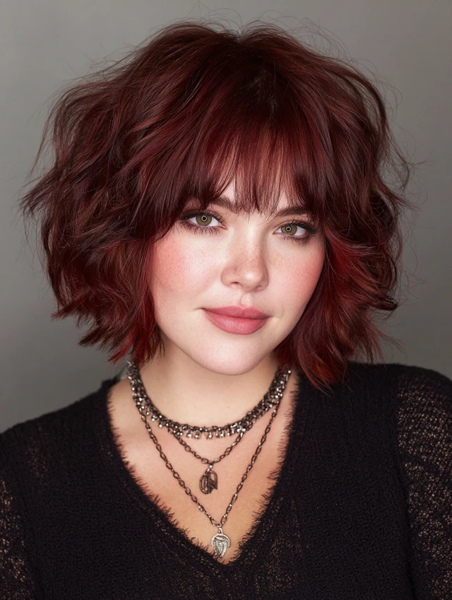 The shag haircut is all about movement, layers, and a carefree vibe. For plus-size women, a shaggy hairstyle can be the ultimate confidence booster — it frames the face, adds volume where needed, and creates angles that visually elongate your features. Whether you choose a short, mid-length, or long shag, this style is playful, chic, and easy to maintain.