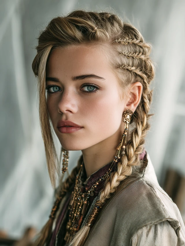 5. Side Part with Braids or Accessories