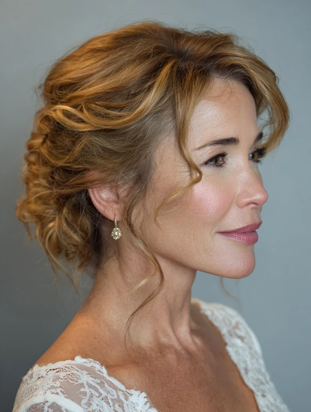 A side-swept updo gathers the hair to one side, creating a flattering, asymmetrical shape. This adds interest and movement.