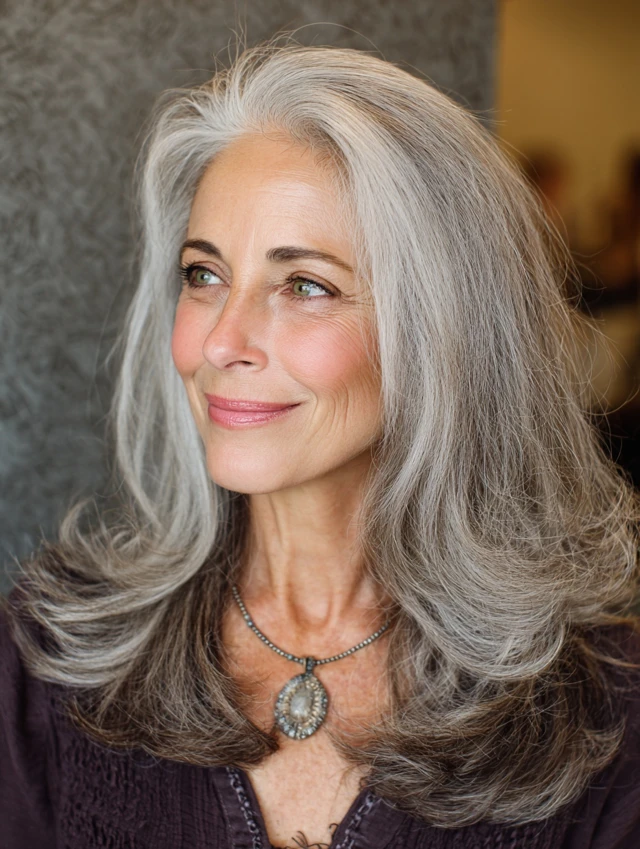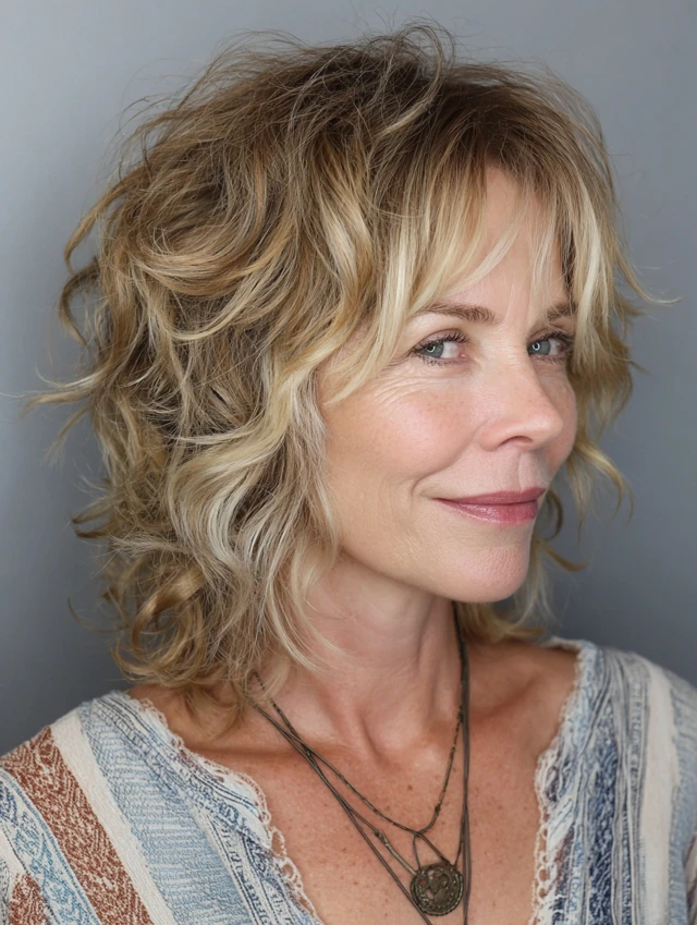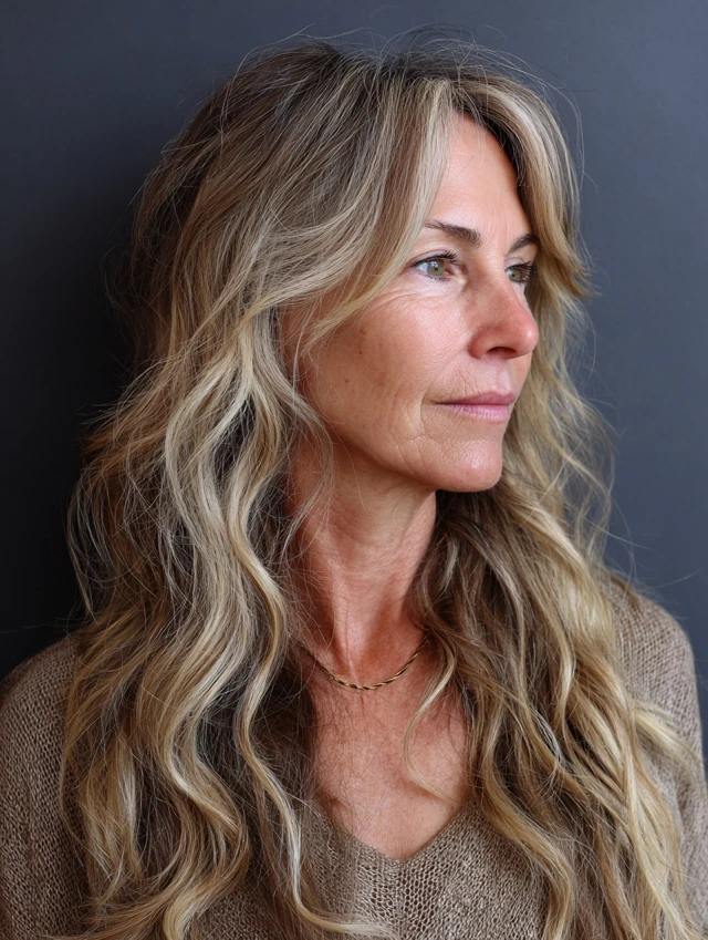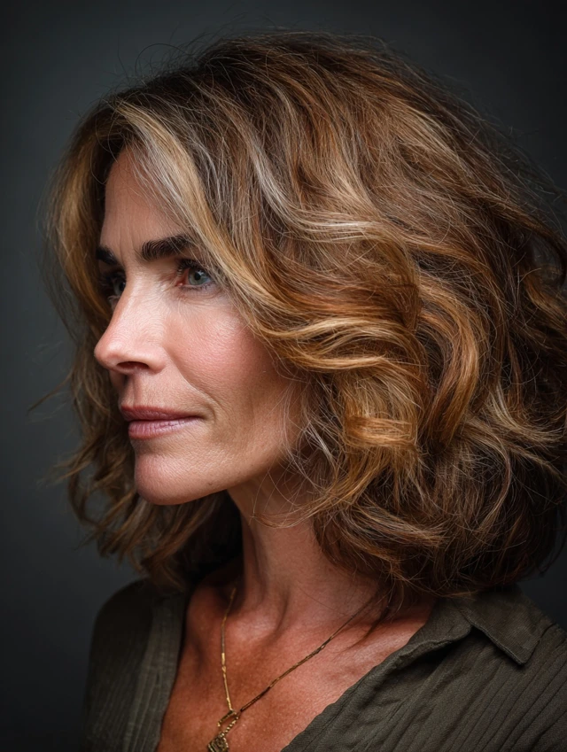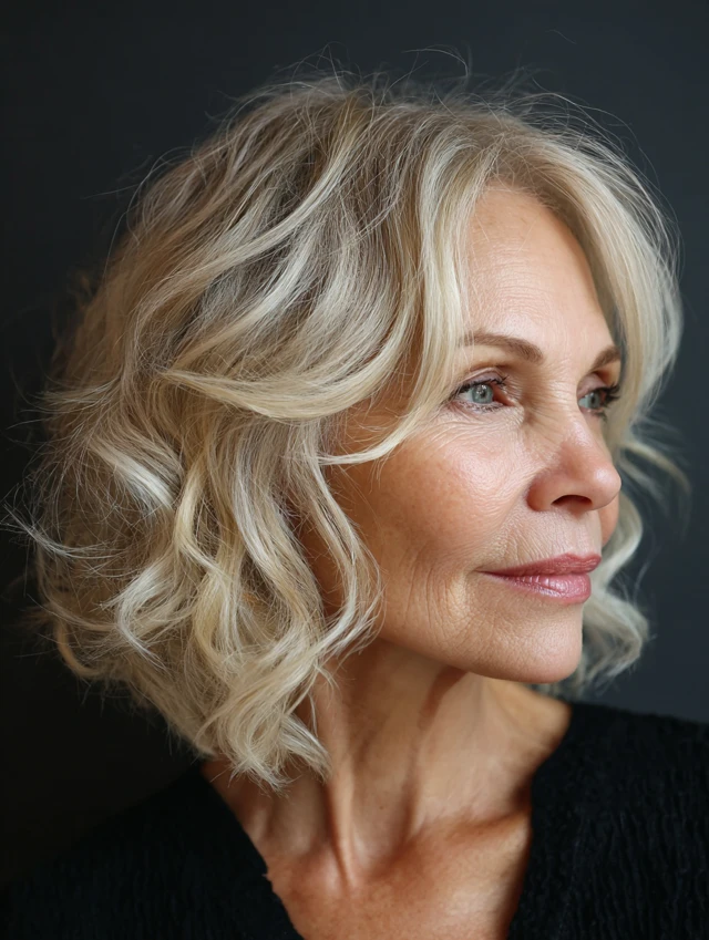 Wavy hairstyles for women over 50 remain popular because they offer natural movement without requiring heavy styling. Waves create softness around the face while adding volume in a subtle, flattering way.