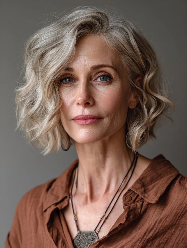 Wavy hairstyles over 50 offer a perfect blend of structure and softness. The right cut enhances natural movement while keeping the style manageable and modern.