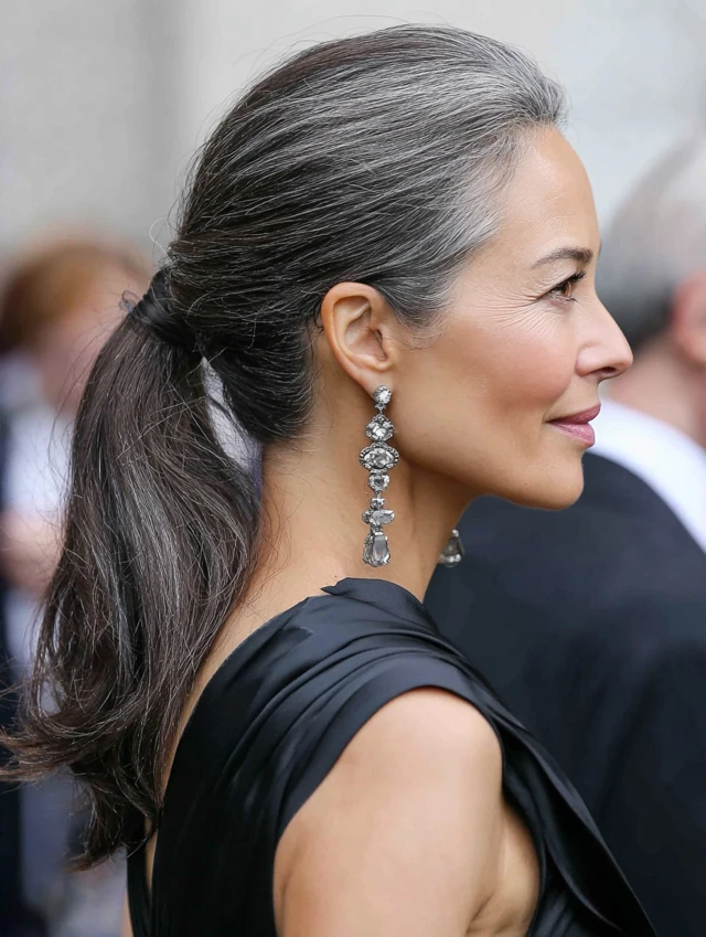 A sleek low ponytail creates a clean and modern look that feels understated yet polished. The smooth finish highlights shine and structure.