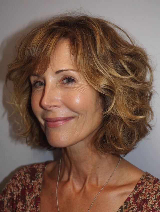 A tousled medium-length cut embraces natural texture, creating a relaxed and modern appearance. The slight movement keeps the style from looking too structured.