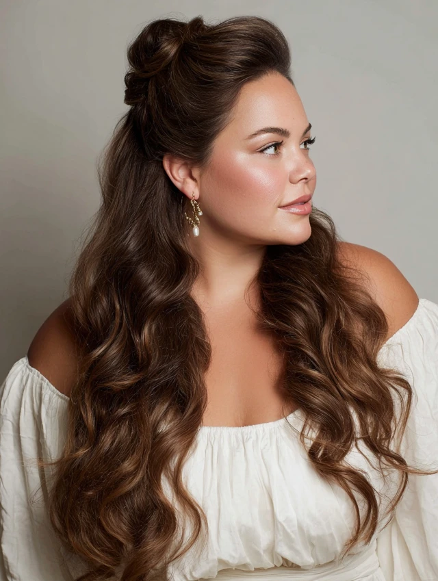 2. Romantic Half-Up, Half-Down Waves